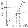 B.升高溫度可使A的不飽和溶液變?yōu)轱柡?br />C.t3℃時(shí),在100g水中溶解60gA能形成飽和溶液