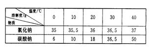 室溫下,稱取氯化鈉和碳酸鈉各30 g放同一燒杯中,加入100 g水充分?jǐn)嚢韬箪o置,得到二者的混合溶液。請參照氯化鈉、碳酸鈉兩種物質(zhì)的溶解度表判斷,以下結(jié)論不正確的是![]()