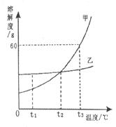 | B.t3℃時,將60g乙加入100g水中可得l60g溶液 |
