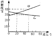 | A.20℃時,甲物質的溶解度小于乙物質的溶解度。 |