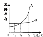 D.A、B兩種飽和溶液都從t3℃降溫到t2℃,析出的晶體一定等量
