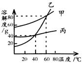 D.40℃時(shí),三種物質(zhì)的溶解度由大到小為:乙>甲>丙