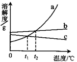 | C.c的不飽和溶液由t2℃降溫至t1℃時,變成飽和溶液 |