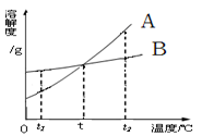 (3分)固休A,B的溶解度曲線如圖所示。![]()