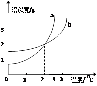 (1)t℃時,兩物質(zhì)的溶解度的大小關(guān)系: a b(填“大于”、“等于”或“小于”)