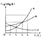 圖中的A、B、C曲線分別是三種物質(zhì)的溶解度曲線。根據(jù)曲線圖回答:![]()