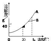 (3分)A和B兩物質(zhì)的溶解度曲線如右圖。![]()