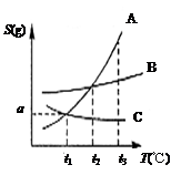 (6分)如圖是一些物質的溶解度曲線。![]()