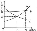 (1)t1℃時(shí),A、B、C三種物質(zhì)中溶解度最大的是 ;