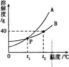 (1)P點(diǎn)表示t1℃時(shí),A的溶解度____B的溶解度(填“>”、“<”或“一”)。