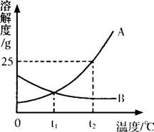 (4分)右圖是A、B兩種固體物質(zhì)的溶解度曲線,請回答下列問題:![]()