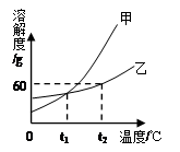 (5分)(1)右圖是甲、乙兩種固體物質(zhì)的溶解度曲線。![]()