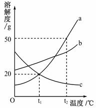 (5分) 如圖是a、b、c三種固體物質(zhì)的溶解度曲線![]()