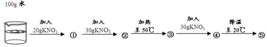 (3)小明在20℃時進(jìn)行了如下實驗,得到相應(yīng)的溶液①~⑤,下列說法正確的是 . ![]()