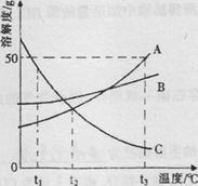 A、B、C三種物質(zhì)的溶解度曲線如右圖所示:![]()