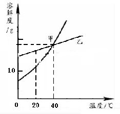 (2)在40℃,等質(zhì)量的甲、乙兩種物質(zhì)的飽和溶液,當(dāng)溫度降低到20℃時(shí),析出晶體較多的是_______________(填甲或乙)