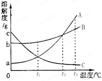 下圖為A、B、C三種固體物質(zhì)的溶解度曲線。![]()