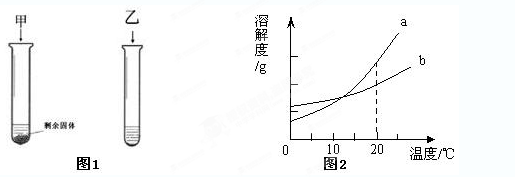 (2)圖2中甲、乙兩溶液中溶質(zhì)質(zhì)量分?jǐn)?shù)的大小關(guān)系為 。