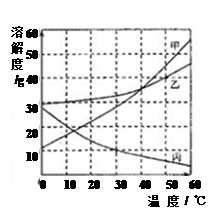 甲、乙、丙三種物質(zhì)的溶解度曲線如圖所示.根據(jù)圖中信息回答下列問題:![]()