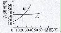 (1)30℃時,甲的溶解度 (填“大于”、“等于”或“小于”)乙的溶解度。