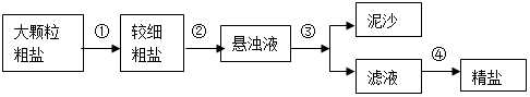氯化鈉是生活必需品,也是重要的化工原料。提純含少量泥沙的粗鹽,一般經(jīng)過以下操作流程:![]()
