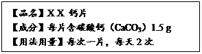 某品牌補鈣藥品的部分說明書如下圖所示。若人體對該藥品中鈣的平均吸收率為30%,按照說明書服用,每天實際被人體吸收的鈣元素質(zhì)量是![]()