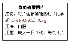 鈣是維持人體正常功能所必需的元素。右圖所示為某種補(bǔ)鈣劑“葡萄糖酸鈣片”說明書的一部分。試根據(jù)圖示中的信息回答下列問題:![]()
