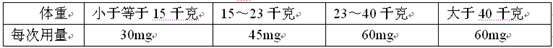 (4)對1歲以上的兒童推薦按照下列“體重一劑量表”服用“達(dá)菲”:![]()