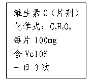 (2)若正常成人每天對(duì)“Vc”的最低需要量為60mg:當(dāng)這些“Vc”完全來自右圖的“維生素C”時(shí),則每次服用“維生素C”至少 片;