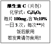 (3分)人體缺乏維生素C(簡寫“Vc”)會患壞血病。下圖所示為某種“維生素C”說明書的一部分,請回答:![]()