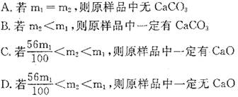 (09南京)某固體樣品中除了含有在高溫下不分解,也不與空氣成分反應(yīng)的物質(zhì)外,還可能含有 CaCO3、CaO中的一種或兩種。某化學(xué)興趣小組為探究該固體的成分,稱量樣品m1 g,經(jīng) 高溫充分煅燒并在干燥的保護(hù)氣中冷卻,至質(zhì)量不再減輕為止,剩余固體的質(zhì)量為m2g。下列推斷不正確的是![]()