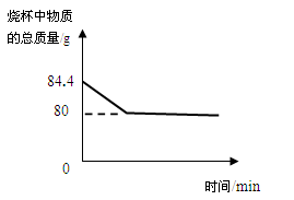 某化學興趣小組的同學為測定石灰石樣品中碳酸鈣的含量(雜質(zhì)不溶于水也不溶于酸),同學們?nèi)∈沂瘶悠?6克,放入68.4克鹽酸中,測得物質(zhì)總質(zhì)量的變化如圖所示,求:![]()