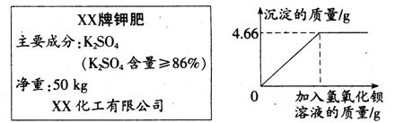 對化肥的銷售,國家規(guī)定了明確的質(zhì)量要求。某農(nóng)業(yè)科技人員對農(nóng)民買來的鉀肥進行了檢測,稱取4.0g樣品放入小燒杯中,加入適量的水溶解后,與足量氫氧化鋇溶液充分反應。產(chǎn)生沉淀的質(zhì)量與所加入的氫氧化鋇溶液質(zhì)量的關(guān)系如圖所示。(假定雜質(zhì)不參加反應,反應方程式為K2SO4+Ba(OH)2=BaSO4↓+2KOH)通過計算鉀肥中硫酸鉀的質(zhì)量分數(shù)判斷該產(chǎn)品是否符合包裝說明?![]()