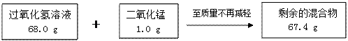 (8分)某興趣小組為測定實驗室中一瓶久置的過氧化氫溶液中溶質的質量分數(shù),實驗測得相關數(shù)據(jù)如下圖所示:![]()