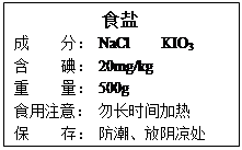 (7分).碘元素對(duì)青少年智力發(fā)育影響很大,加碘鹽通常在食鹽中加碘酸鉀(K1O3)。下圖是超市銷(xiāo)售的一種加碘鹽標(biāo)簽上的部分文字說(shuō)明。請(qǐng)回答下列問(wèn)題: