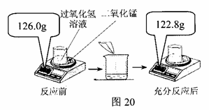 為測定實驗室中某過氧化氫溶液的溶質質量分數(shù),小明取25.0 g過氧化氫溶液放入燒杯中,然后進行如圖20所示的實驗。請計算:![]()