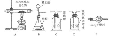 (二)某實(shí)驗(yàn)小組為測定銅和氧化銅混合物中氧化銅的質(zhì)量分?jǐn)?shù),設(shè)計(jì)了用干燥純凈的氫氣還原氧化銅的實(shí)驗(yàn),所需實(shí)驗(yàn)裝置如下圖所示,回答下列問題:![]()