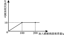 小明同學(xué)在某化工廠進(jìn)行社會實(shí)踐,技術(shù)員與小明一起分析由氯化鈣和氯化鈉組成的產(chǎn)品中氯化鈉的含量,F(xiàn)取13.4g固體樣品,全部溶于96.6g水中,向所得的混合溶液中滴加溶質(zhì)質(zhì)量分?jǐn)?shù)為10.6%的碳酸鈉溶液,記錄了如圖所示的曲線關(guān)系。技術(shù)員提示小明:氯化鈣與碳酸鈉反應(yīng)的化學(xué)方程式:CaCl2+Na2CO3 =CaCO3↓+2NaCl。求:![]()