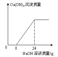 (4分)某環(huán)保小組監(jiān)測到一工廠排放的廢水中含有H2SO4和CuSO4 。為了測定廢水中CuSO4的質(zhì)量分?jǐn)?shù),該小組取了100g廢水,逐滴加入10%的NaOH溶液至過量。測得生成Cu(OH)2沉淀質(zhì)量與所加NaOH溶液質(zhì)量關(guān)系如下圖所示。![]()