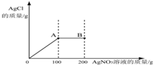 將2.34gNaCl固體溶于103.4g水中得到不飽和溶液,再向所得溶液中小心滴入200g AgNO3溶液.實(shí)驗(yàn)過程中,生成的AgCl的質(zhì)量與滴入的AgNO3溶液的質(zhì)量關(guān)系如圖所示(提示:NaCl+AgNO3=AgCl↓+NaNO3).![]()