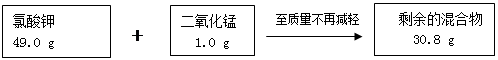 (2)現(xiàn)有氯酸鉀與二氧化錳混合物30g,放在試管中加熱到無氣體放出為止,試管中剩余固體20.4g。
