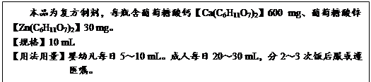 (5分)某葡萄糖酸鈣鋅口服溶液使用說(shuō)明書(shū)的部分內(nèi)容如下:![]()
