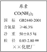 (3) 根據(jù)標(biāo)識(shí)說(shuō)明計(jì)算,每袋尿素中有效營(yíng)養(yǎng)元素的含量不低于 千克。