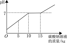 (3分)在化學(xué)實(shí)驗(yàn)技能考試做完“二氧化碳的制取和性質(zhì)”實(shí)驗(yàn)后,廢液桶中有大量的鹽酸與氯化鈣的混合溶液(不考慮其他雜質(zhì))。為避免污染環(huán)境并回收利用廢液,化學(xué)興趣小組做了如下實(shí)驗(yàn):取廢液10kg,向其中加入溶質(zhì)質(zhì)量分?jǐn)?shù)為21.2%的碳酸鈉溶液。所得溶液pH與加入的碳酸鈉溶液的質(zhì)量關(guān)系如右圖所示(已知:Na2CO3+CaCl2=CaCO3↓+2NaCl):![]()