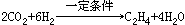 (3分)為了減少“溫室效應(yīng)”帶來(lái)的負(fù)面影響,世界各國(guó)都在限制二氧化碳等溫室氣體的排放量?茖W(xué)家經(jīng)過(guò)研究,發(fā)現(xiàn)二氧化碳在一定條件下可轉(zhuǎn)化為有機(jī)物乙烯(C2H4是生產(chǎn)聚乙烯塑料的原料),其化學(xué)方程式為: