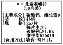 右圖為“хх”鈣片商品標簽圖,請根據(jù)標簽的有關信息完成下列各題。 ![]()