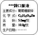 (6分)兒童缺鋅會引起食欲不振、發(fā)育不良。如圖為某種補鋅口服液說明書的一部分,請回答:![]()