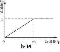 已知燒杯中裝有200g硫酸和硫酸鋅混合溶液,其中含硫酸鋅12.1g。向燒杯中逐漸加入鋅粒,放出氣體質(zhì)量與加入鋅粒質(zhì)量的關(guān)系如圖14所示。當(dāng)恰好完全反應(yīng)時(shí),所得的溶液為不飽和溶液。![]()