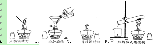 下列有關(guān)酒精燈使用或存放的圖示錯(cuò)誤的是 ![]()