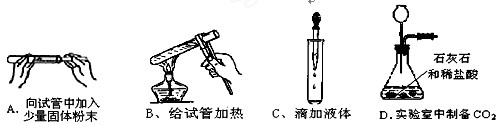 | C.實(shí)驗(yàn)室用石灰石和稀鹽酸制取二氧化碳加藥品時(shí),先加石灰石,再加稀鹽酸 |